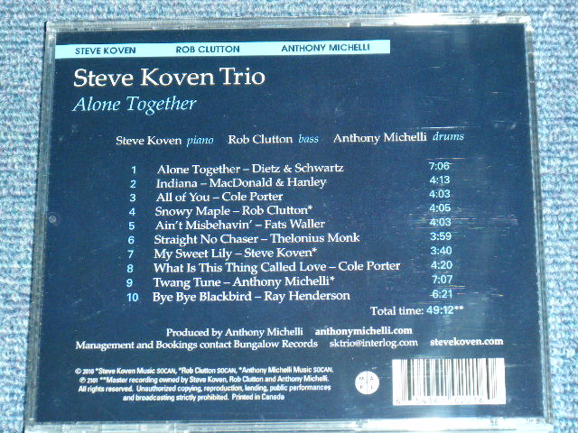 Steve Koven Trio, (Rob Clutton, Anthony Michelli)- Steve Koven Trio – Alone Together (MINT-/MINT) / 2010 CANADA Used CD