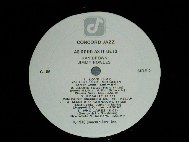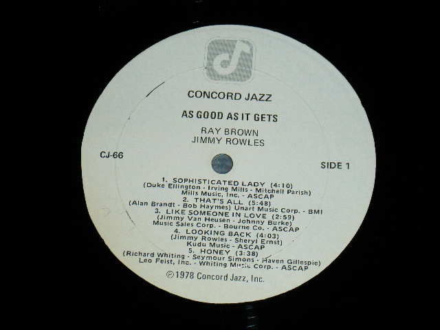 RAY BROWN + JIMMY ROWLES - S GOOD AS IT GETS (Ex++/MINT-)/ 1978 US AMERICA ORIGINAL Used LP [CONCORD JAZZ CJ-66]