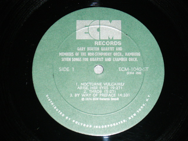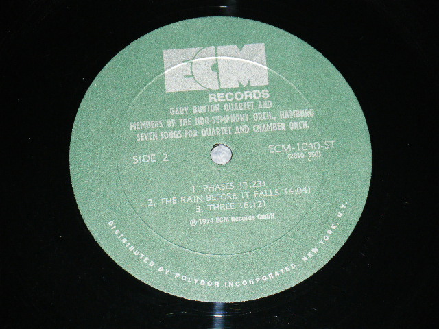 GARY BURTON - SEVEN SONGS FOR QUARTET AND CHAMBER ORCHESTRA (Ex+++MINT-) / 1974 US AMERICA ORIGINAL Used LP [ECM ECM-1040 ST]