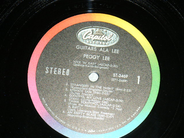 PEGGY LEE - GUITAR A LA LEE (Ex++/MINT-) / 1966 US AMERICA ORIGINAL 1st Press "BLACK With RAINBOW 'CAPITOL' Logo on TOP  Label" STEREO Used LP [CAPITOL   ST-2469]