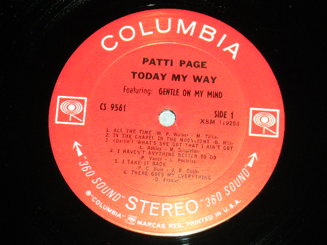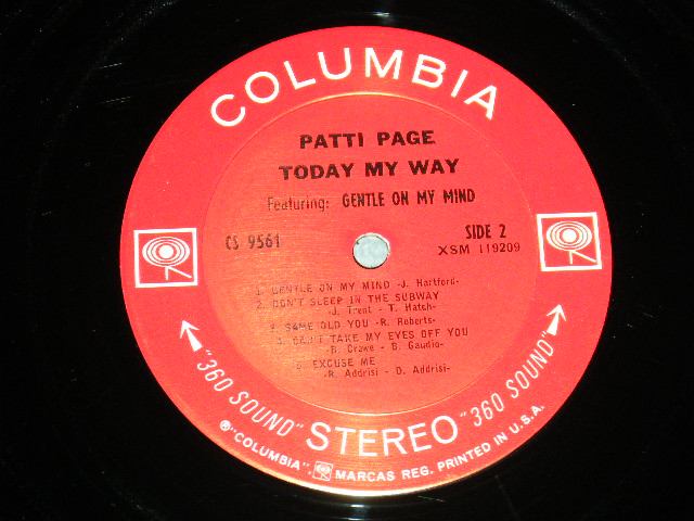 PATTI PAGE - TODAY MY WAY (MINT-/MINT-) / 1967 US AMERICA ORIGINAL "360 Sound Label" STEREO Label Used LP [COLUMBIA CS-9561 STEREO]