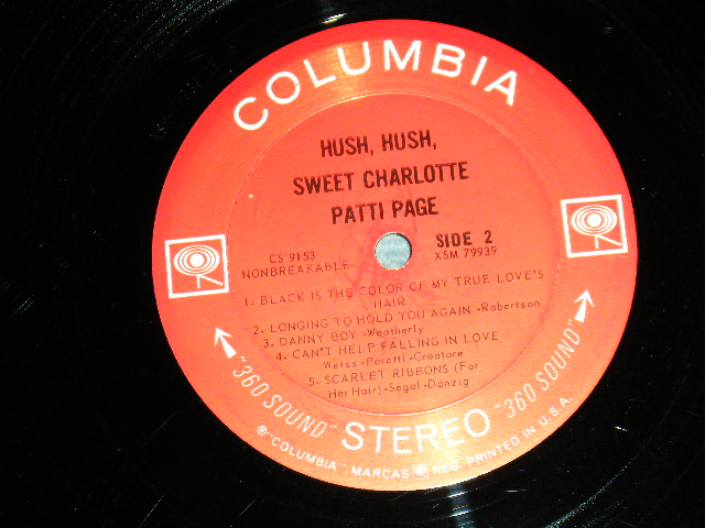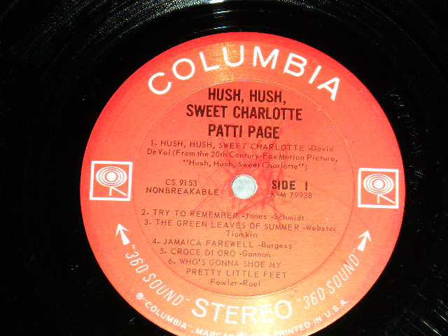 PATTI PAGE - HUSH, HUSH, SWEET CHARIOTTE (Ex+++/Ex+++) /1965 US AMERICA ORIGINAL "360 SOUND in WHITE Label" STEREO Used LP [COLUMBIA CS-9153 STEREO]