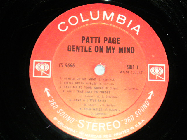 PATTI PAGE - GENTLE ON MY MIND (MINT/Ex+++) /1968 US AMERICA ORIGINAL "360 Sound Label" STEREO Used LP [COLUMBIA CS-9666 STEREO]