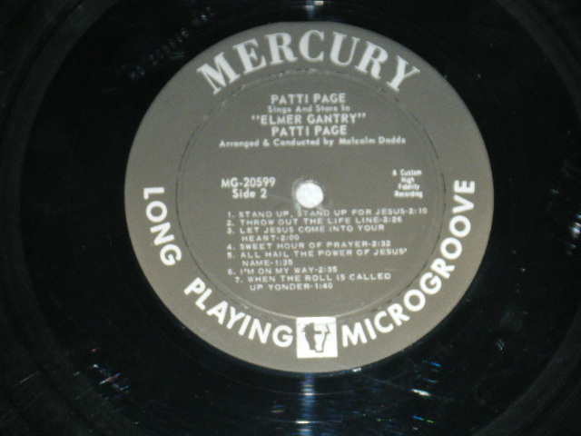 PATTI PAGE - SINGS and STARS IN ELMER GANTRY (MINT-/Ex+++) /1960 US AMERICA ORIGINAL "BLACK with SILVER Print Label" MONO Used LP[MERCURY MG-20599 MONO]