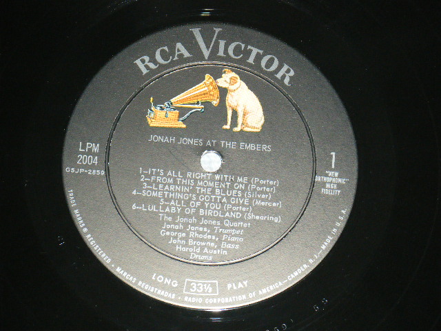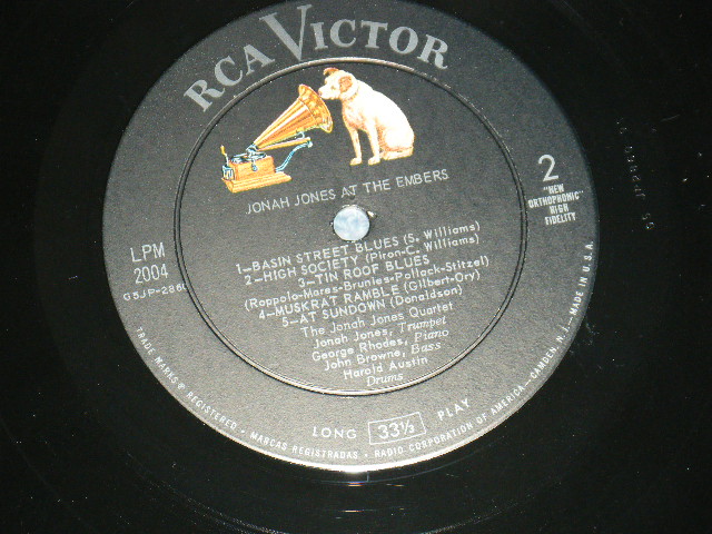 JONAH JONES - JONAH JONES AT THE EMBERS (Ex++/Ex+++ B-1,2:Ex EDSP) / 1959 US AMERICA ORIGINAL "BLACK with DOG ON TOP Label" MONO Used LP [RCA VICTOR LPM-2004 MONO]