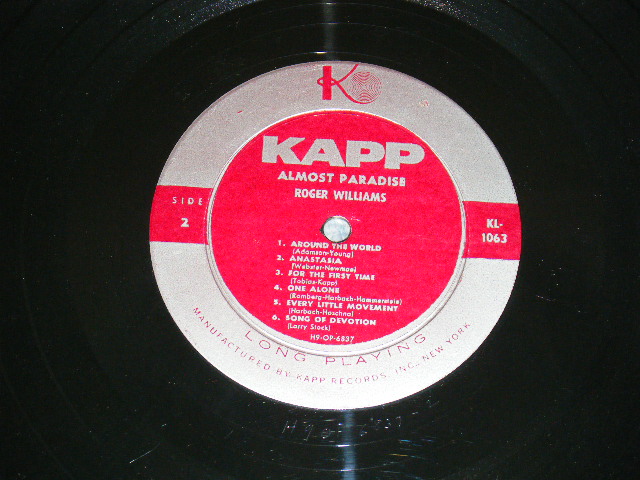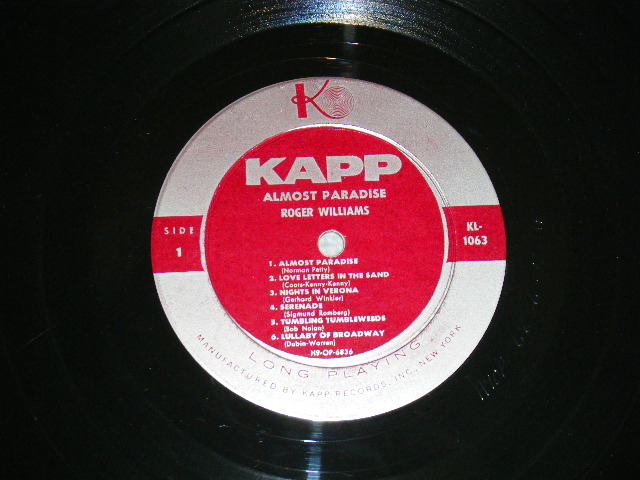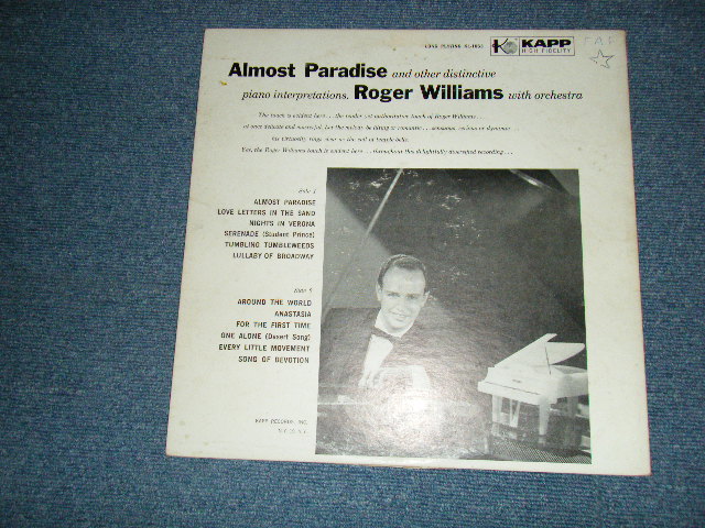 ROGER WILLIAMS - ALMOST PARADISE (Ex+/Ex+ STOFC, STEAR, EDSP) / 1957 US AMERICA ORIGINAL 1st Press "MAROON with SILVER Print Label" MONO Used LP [KAPP KL-1063 MONO]