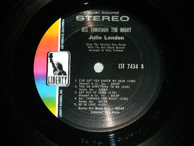 JULIE LONDON - ALL THROUGH THE NIGHT (Ex++/MINT-) / 1967 Version?US ORIGINAL RE-PRESS "2nd Press COLOR LIBERT Logo on LEFT SIDE Label" STEREO Used LP [LIBERTY LST-7434 STEREO]