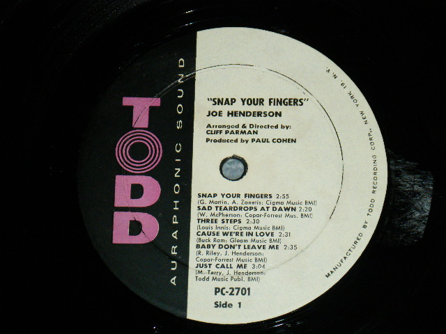JOE HENDERSON - SNAP YOUR FINGERS (Ex++/MINT-~Ex+++ EDSP) / 1962 US AMKERICA ORIGINAL MONO Used LP [TODD MT-2701 MONO]