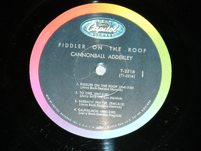 CANNONBALL ADDERLEY - FIDDLER ON THE ROOF (Ex++/MINT-) / 1964 US AMERICA ORIGINAL "BLACK with RAINBOW and 'CAPITOL' Logo on TOP" Label MONO Used LP [CAPITOL T-2216 MONO]
