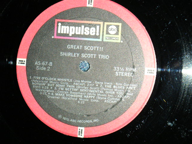 SHIRLEY SCOTT - GREAT SCOTT!! (Ex+/Ex++ BB, EDSP) / US AMERICA RE-PRESS / 2nd Press "BLACK with RED RING Label" STEREO Used LP [IMPULSE! AS-67 STEREO]