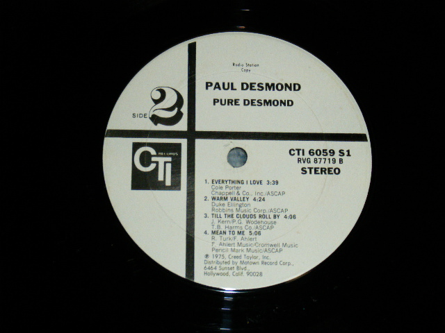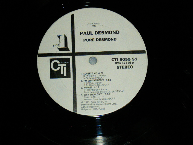 PAUL DESMOND - PURE DESMOND (Ex+++/MINT-) / 1975 US AMERICA ORIGINAL "WHITE LABEL PROMO" Used LP [CTI CTI-6059]