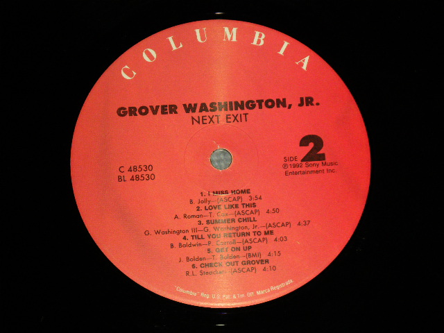 GROVER WASHINGTON JR. - NEXT EXIT ( With CUSTOM INNER) (Ex+++/MINT-) / 1992 US AMERICA ORIGINAL Used LP [COLUMBIA C-48530]